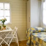 Nogle af værelserne har udsigt til haven. Der er også et køleskab og en komfur top samt et bidet og en bruser.